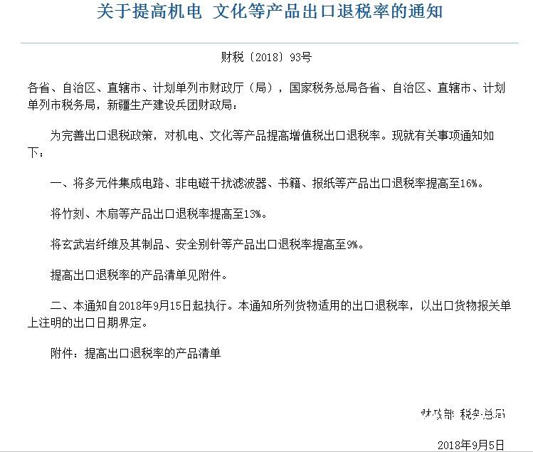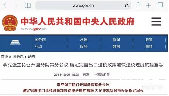 10月8日,國務院確定完善出口退稅政策,加快退稅進度的措施,為企業減負,保持外貿穩定增長!