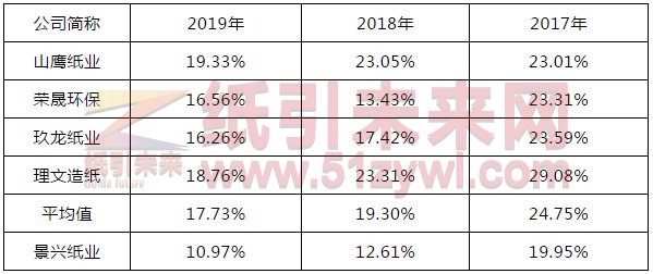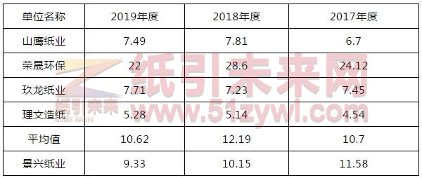 數(shù)據(jù)來源:各公司公告整理,山鷹紙業(yè)尚未披露年報,表格中為2019年前三季度數(shù)據(jù),另玖龍紙業(yè)年度報告財務(wù)報告期為上年六月末至本年六月末,已相應(yīng)調(diào)整。