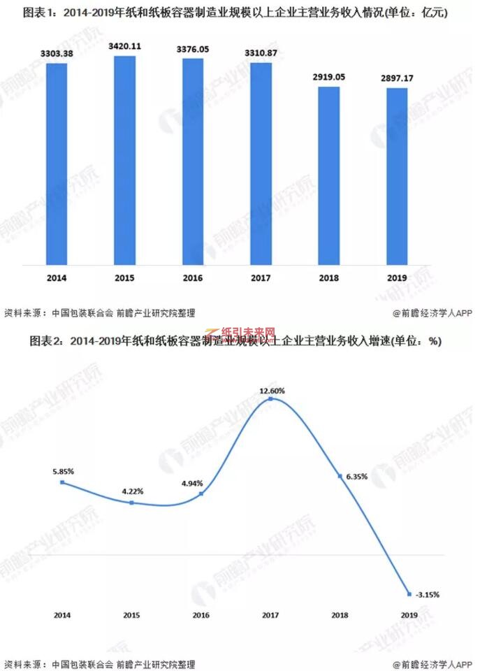 2019年,紙和紙板容器制造業規模以上企業實現主營業務收入2897.17億元,同比下降3.15%,這是行業六年來規模以上企業主營業務收入首次出現下降。