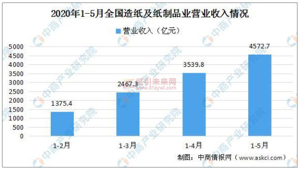 從行業(yè)效益情況來看:數據顯示,2020年1-5月,全國造紙及紙制品業(yè)營業(yè)收入4572.7億元,同比下降11.5%;利潤總額221.3億元,同比增長5.6%。